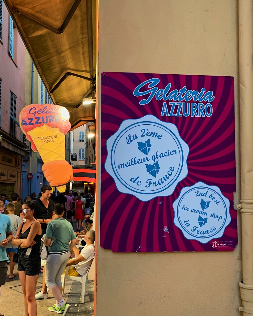 There are many gelato spots in the Old Town; some across a narrow street from one another. I tried the gelato at Gelateria Azzurro my first night in town and came back the next. This place is known for being the #2 ice cream spot in France (there’s a sign!!) and their homemade waffle cones. Given the pace of business, I was pleasantly surprised by how friendly and patient the servers were. I tasted some of the floral flavors I hadn’t encountered anywhere else – violet, jasmine, lilac?! Violet was lovely but a bit too much for a whole scoop. I’m sure there are some really interesting flavor pairings to uncover with a bit more time. I opted for the white chocolate and cherry vanilla because they were clearly both nut-free and furthest away from my mortal enemies (I know, still dicey but I’ve made it this far).