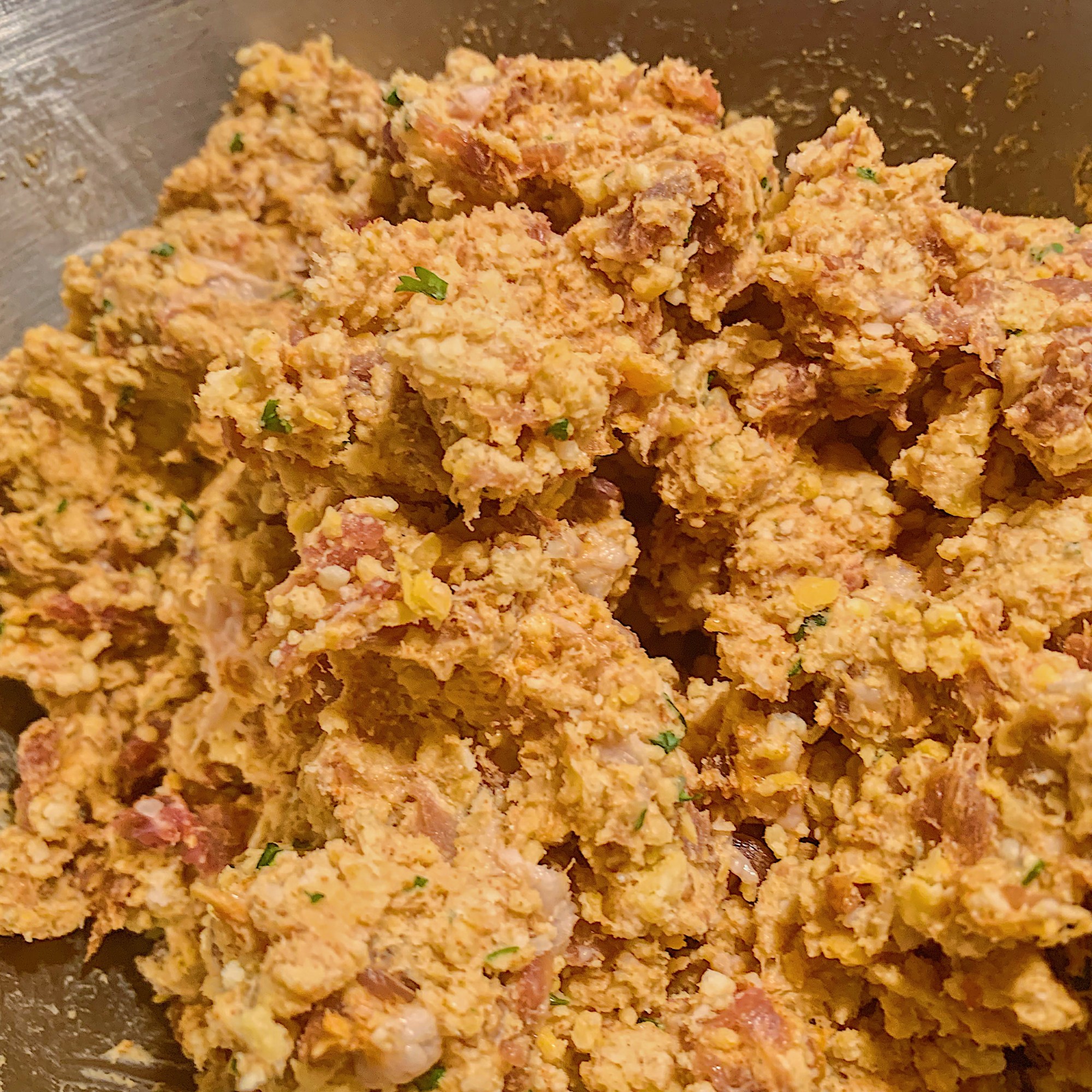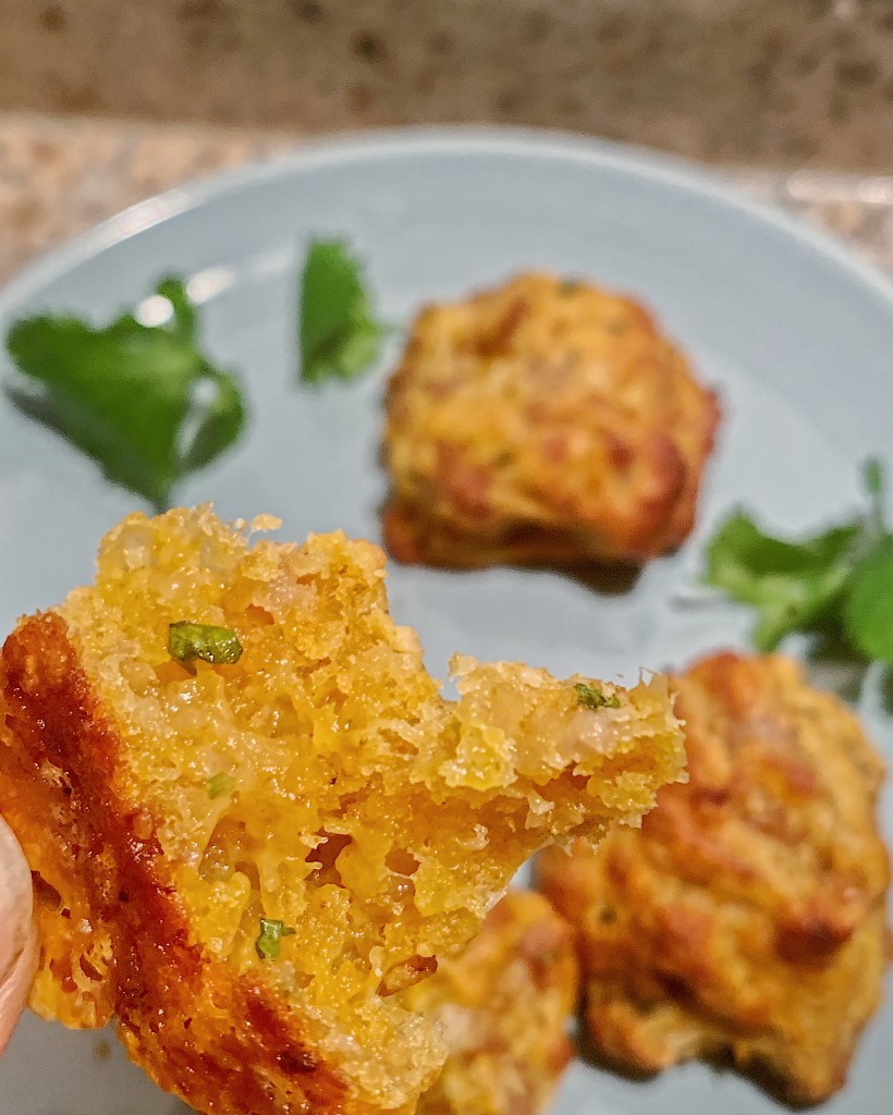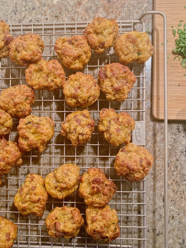 For literally as long as I can remember, I’ve loved the original version of this recipe, Sausage Cheese Balls. Savory, cheesy, biscuit-y with crispy edges – 4 year old me was sold. Though Bisquick baking mix is found across the US, I think these little porky nuggets were most popular in the south as a party food or special breakfast treat. I remember being excited to eat them at my NC preschool, probably at parties. I think my mom (who hates biscuits and all things adjacent) would even make them for me at home #truelove.