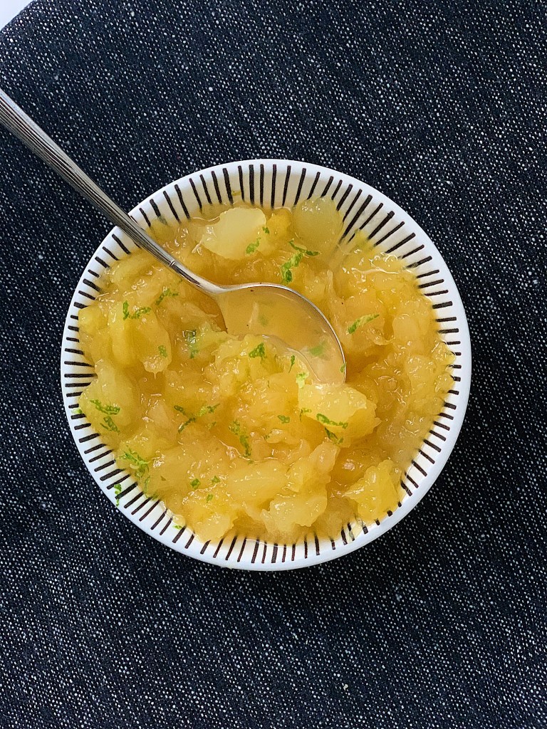 You can freeze the pineapple jam. I stored mine in a ziplock bag. Just thaw it and bring it room temperature to serve. I did add a bit of fresh lime zest on top for color and a pop of freshness.