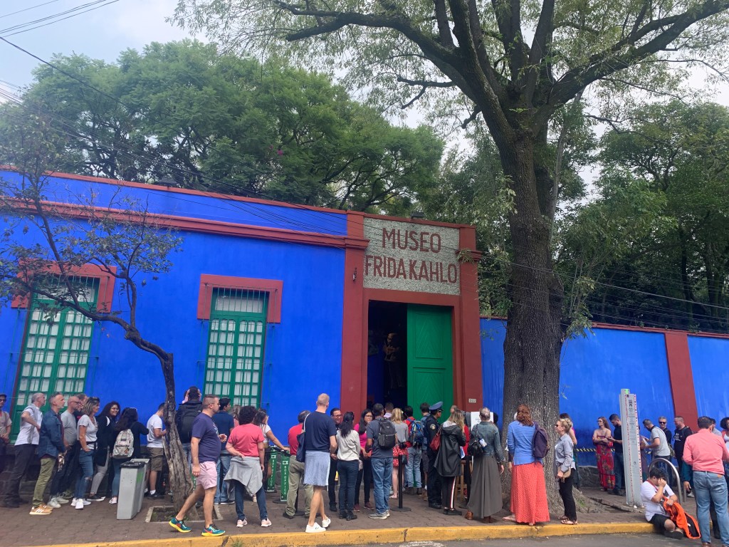 We booked tickets to the Frida Kahlo museum in advance, which is key doing because the line is out of control. True to form, Laura and I both got tour guide headsets, which take your through the museum and garden. I would recommend this if you want to learn about the lives of Frida and Diego because the signage walls is very limited. The museum was packed, so were almost walking in a single file line through each of the rooms in the house. Outside, there are sculptures and when we visited, a Dia De Los Muertos ofrenda (altar) to Frida covered with marigold flowers, pictures, sweet and other objects left as offerings to here. I enjoyed my time there, but if you are crowd averse or are nominally interested in Frida Kahlo then it may not be for you.