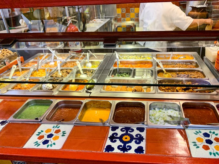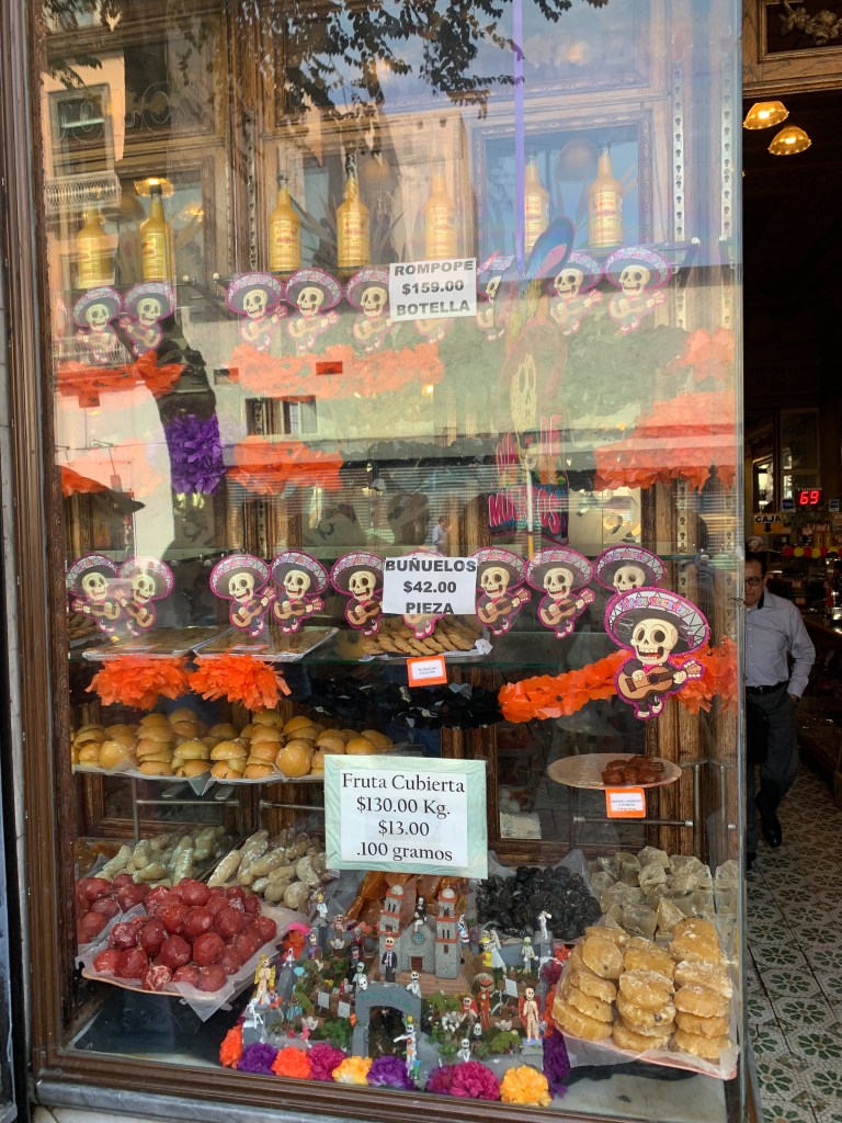 Pasteleria Ideal was a site to see. This pastry shop has been open since 1927 and serves a dizzying array of pan dulces (sweet breads), cakes and many other desserts and baked goods. It’s not known for having the best desserts, but it’s a local institution that’s fun to experience. We went right before Dia de Los Muertos and it was packed with people clamoring to stock up on traditional breads and sweets. They have two locations in this neighborhood and we visited the 16 de Septiembre location.