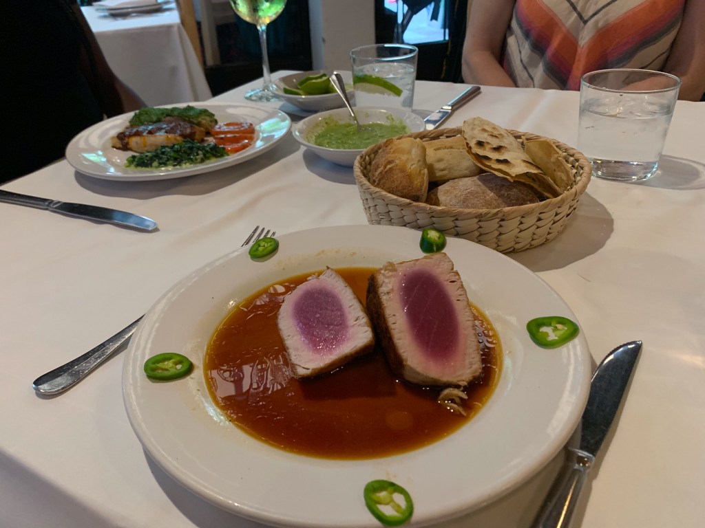 Contramar is one of the most notable restaurants in the city (at least for US travelers), serving some of the most instagrammed fish around. I’d heard an interview with the chef/owner, Gabriela Cámara, earlier in the year which made me even more eager to check it out this beach-inspired seafood restaurant. It’s only open for lunch and I strongly suggest you make reservations in advance. They are on Opentable. The service here is excellent and even better if you speak a little Spanish. When we asked about a special our server went and got us a generous sample to try. He also suggested a smaller size option for trying their famous grilled fish with red and green salsas when he learned it’d just be for me. They are also known for their tuna tostadas, which I regrettably didn’t try. I’ll be back! However, their seared tuna steak was amazing. Save room for their desserts as well.