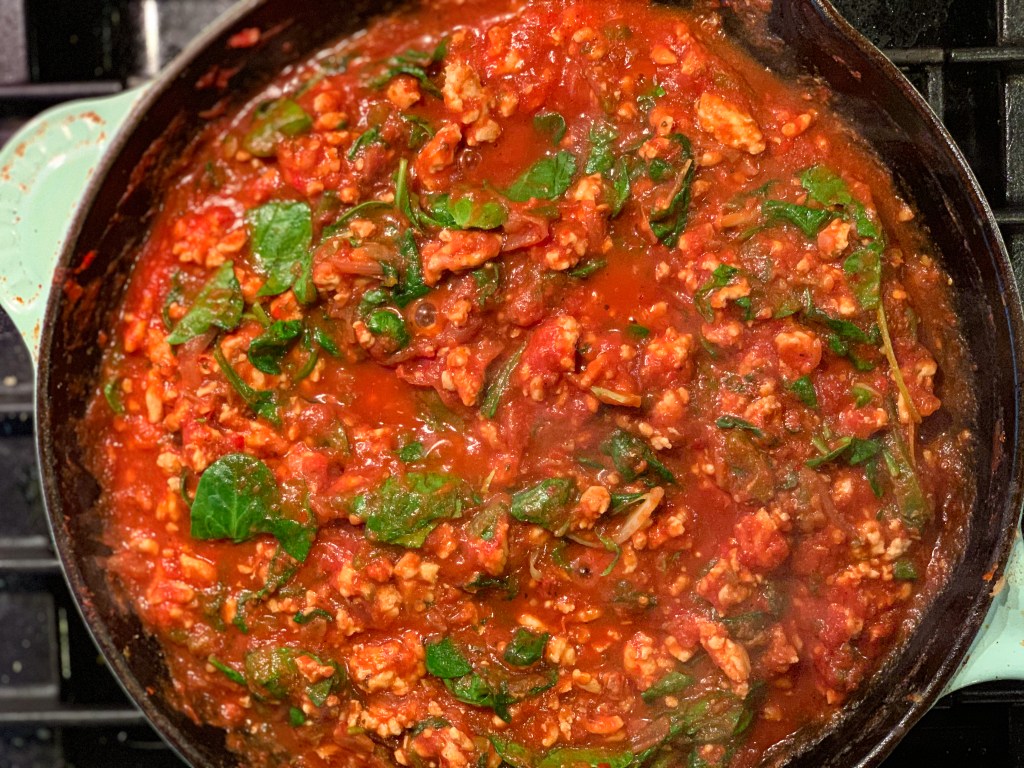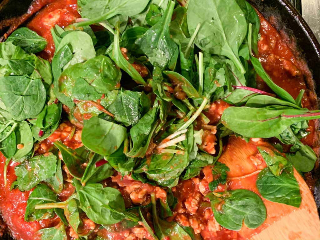Add some eggs if you like. You could poach them in the sauce after adding the greens. Kinda like shakshuka. Now that’d be a breakfast!