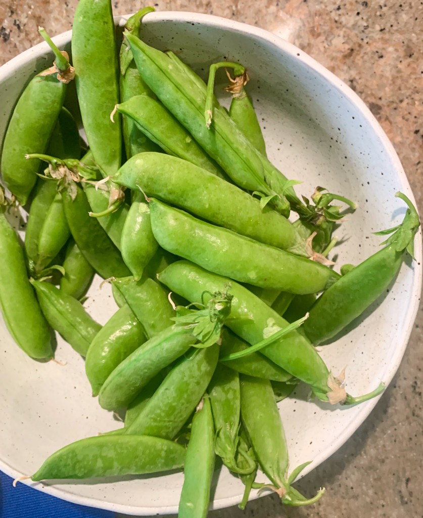 - 12 oz sugar snap peas, strings removed (see notes)